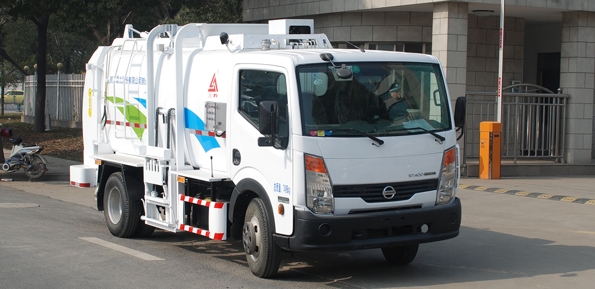 CGJ5071TCA型餐廚垃圾車是對賓館、餐廳、食堂的廚余垃圾、食品加工的廢料、副食品集貿(mào)市場和超市的過期商品等直接收運的專用車輛。該產(chǎn)品通過底盤取力器驅(qū)動液壓泵,產(chǎn)生高壓油,帶動液壓系統(tǒng)工作,從而提桶機構(gòu)和頂蓋工作,將垃圾桶內(nèi)垃圾倒入箱體;到指定地點,打開后門,推出推板進行卸料,完成作業(yè)。